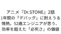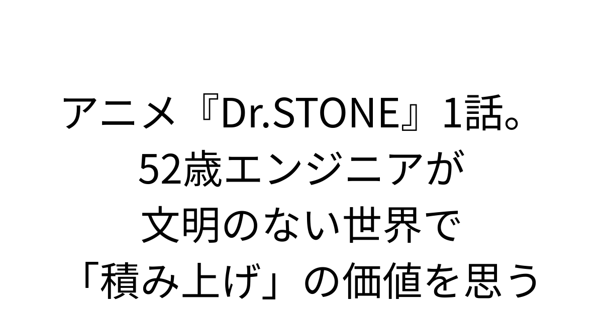 最近、Netflixで配信されている『Dr.STONE』というアニメを見始めました。全人類が突然石になり、数千年の時を経て文明が滅びた世界で一人の科学少年が目覚める、という物語。