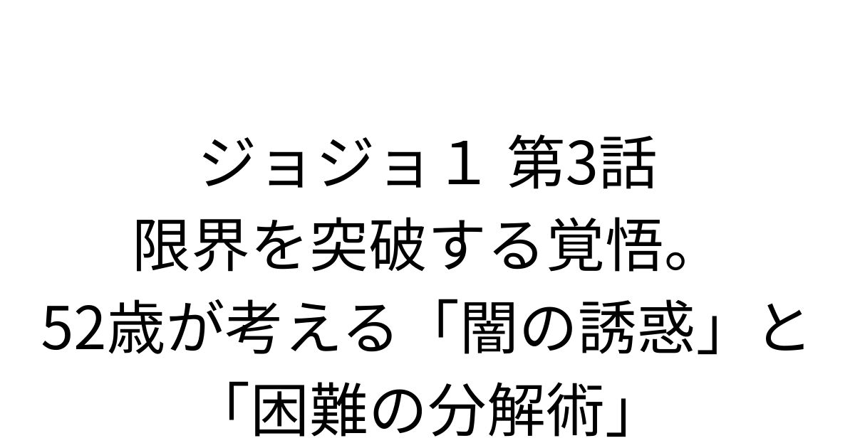 ジョジョ1 第2話|「違和感」の正体を追う。52歳が語る直感の鋭さと、敵地へ飛び込む覚悟